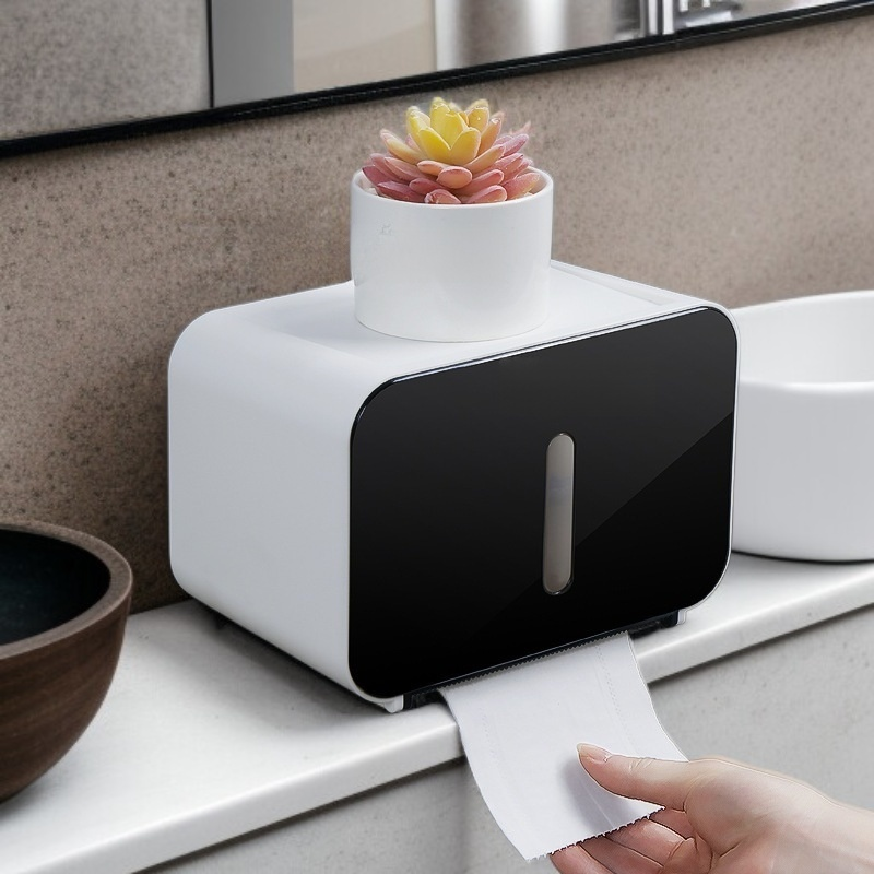 벽걸이형, 타공 불필요, 방수 티슈 박스, 화장지 박스, 욕실 화장실 선반, 롤페이퍼 박스